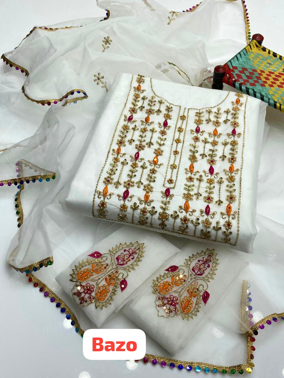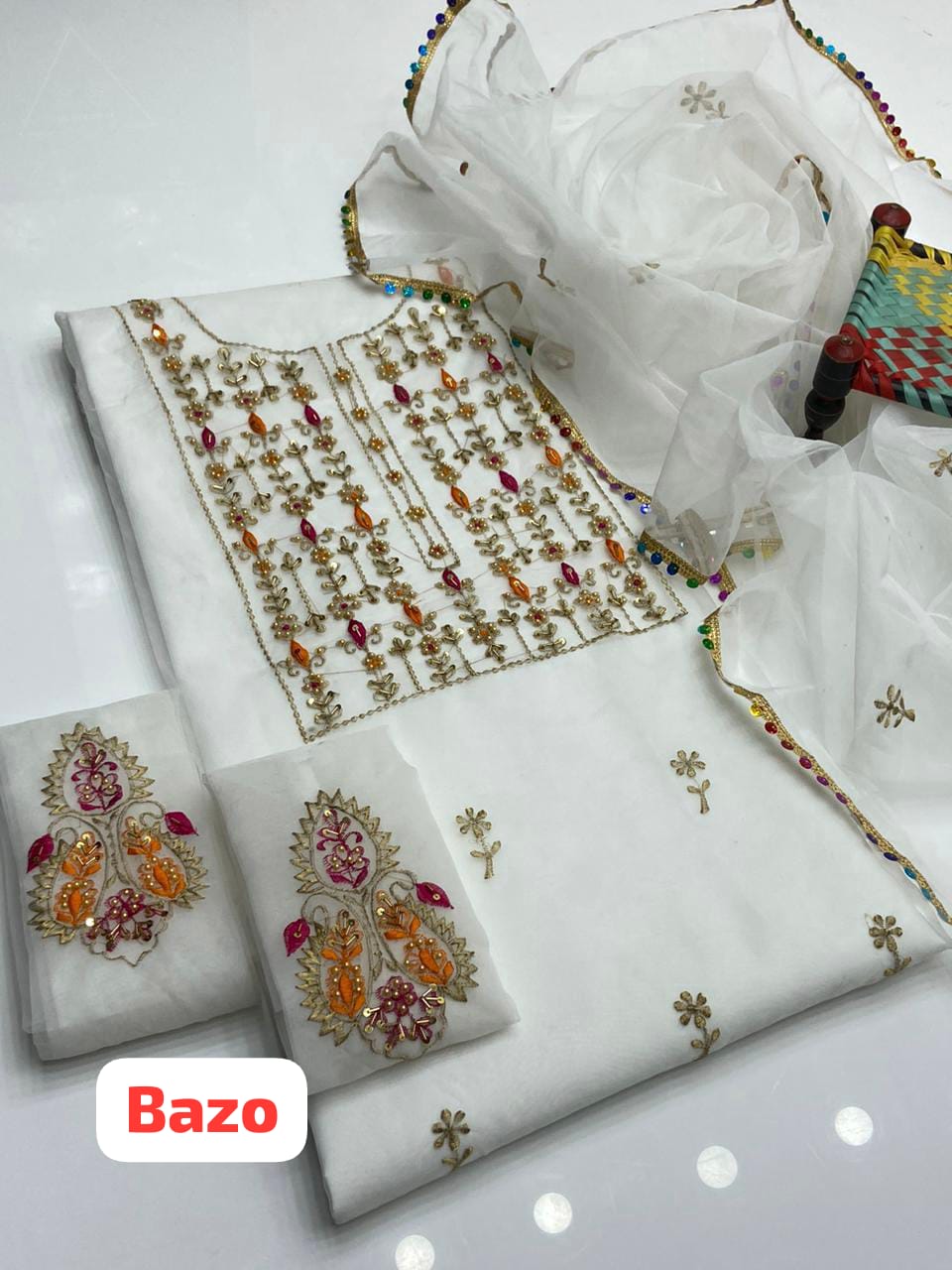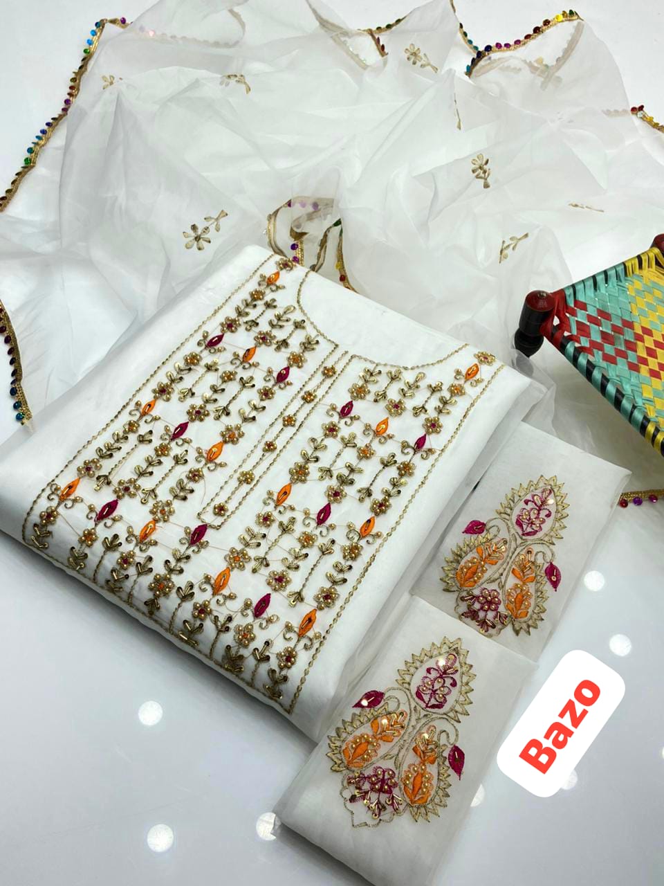 Alluring Organza Embroidered Suit With Zari Beads Work 2Pcs Dress