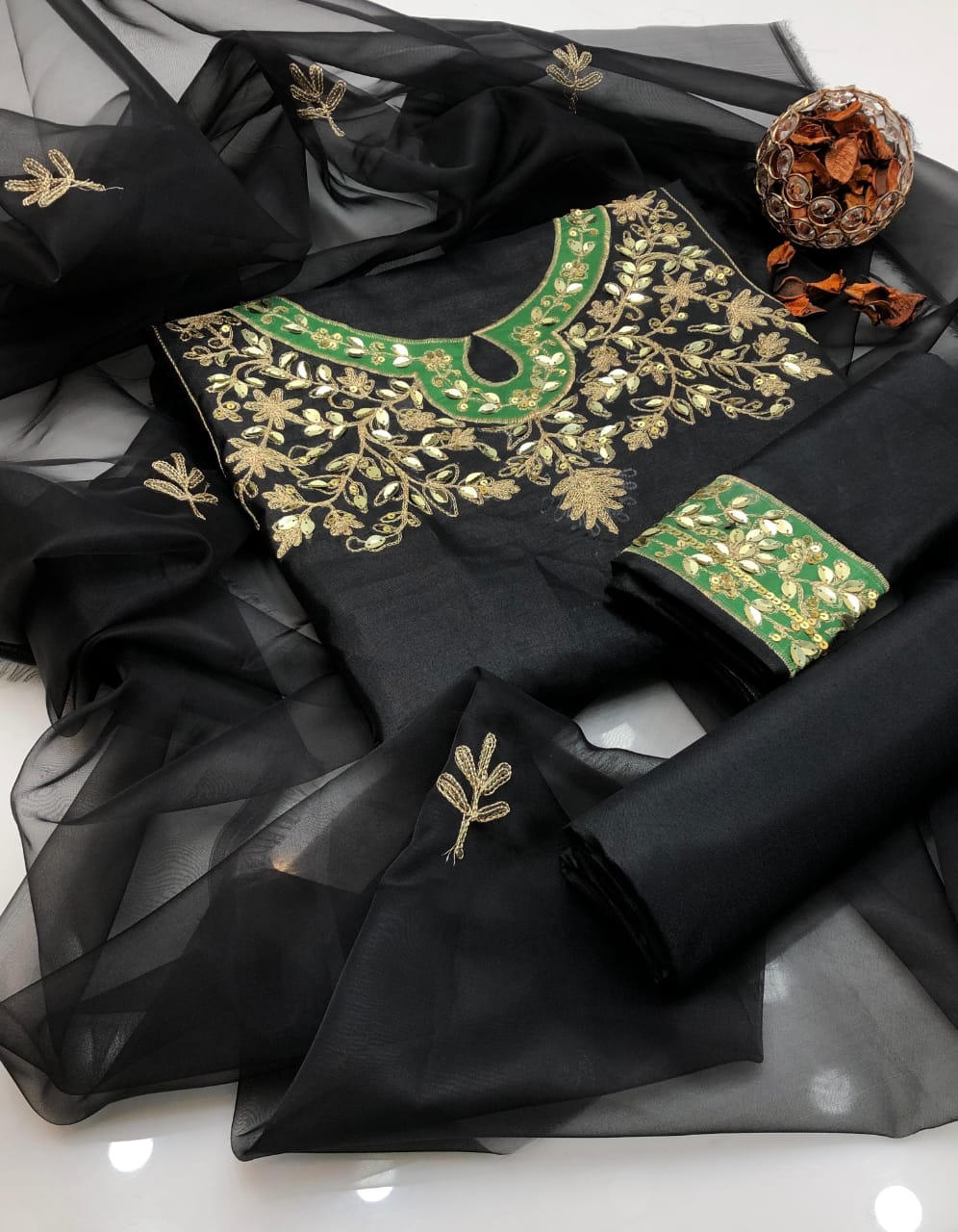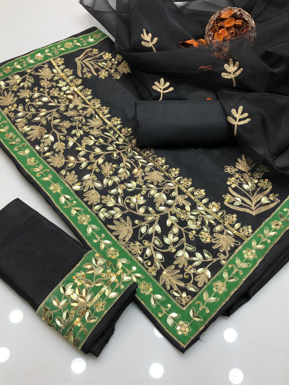 Details: Mini bunches embroidered organza dupatta and plain trouser