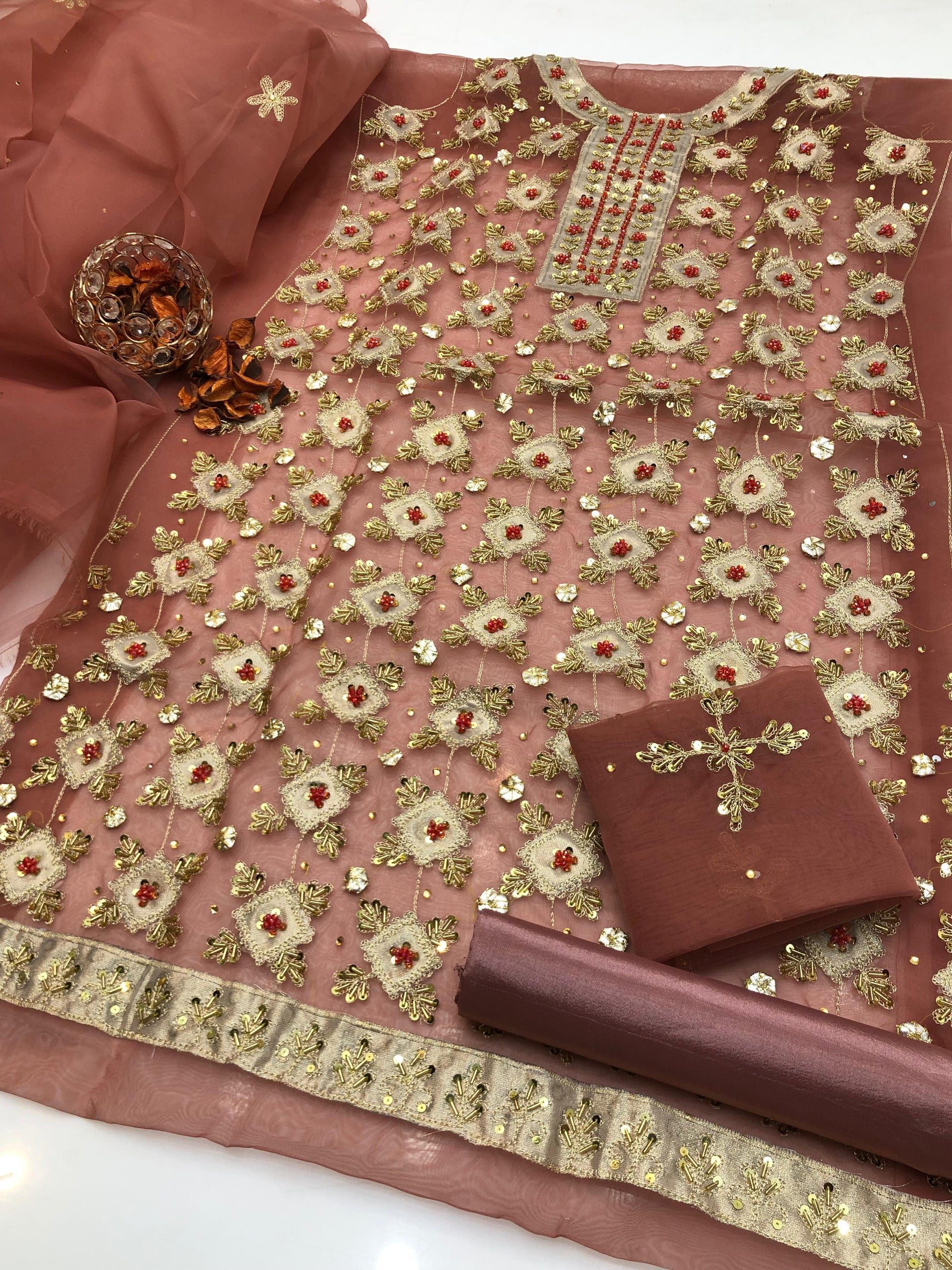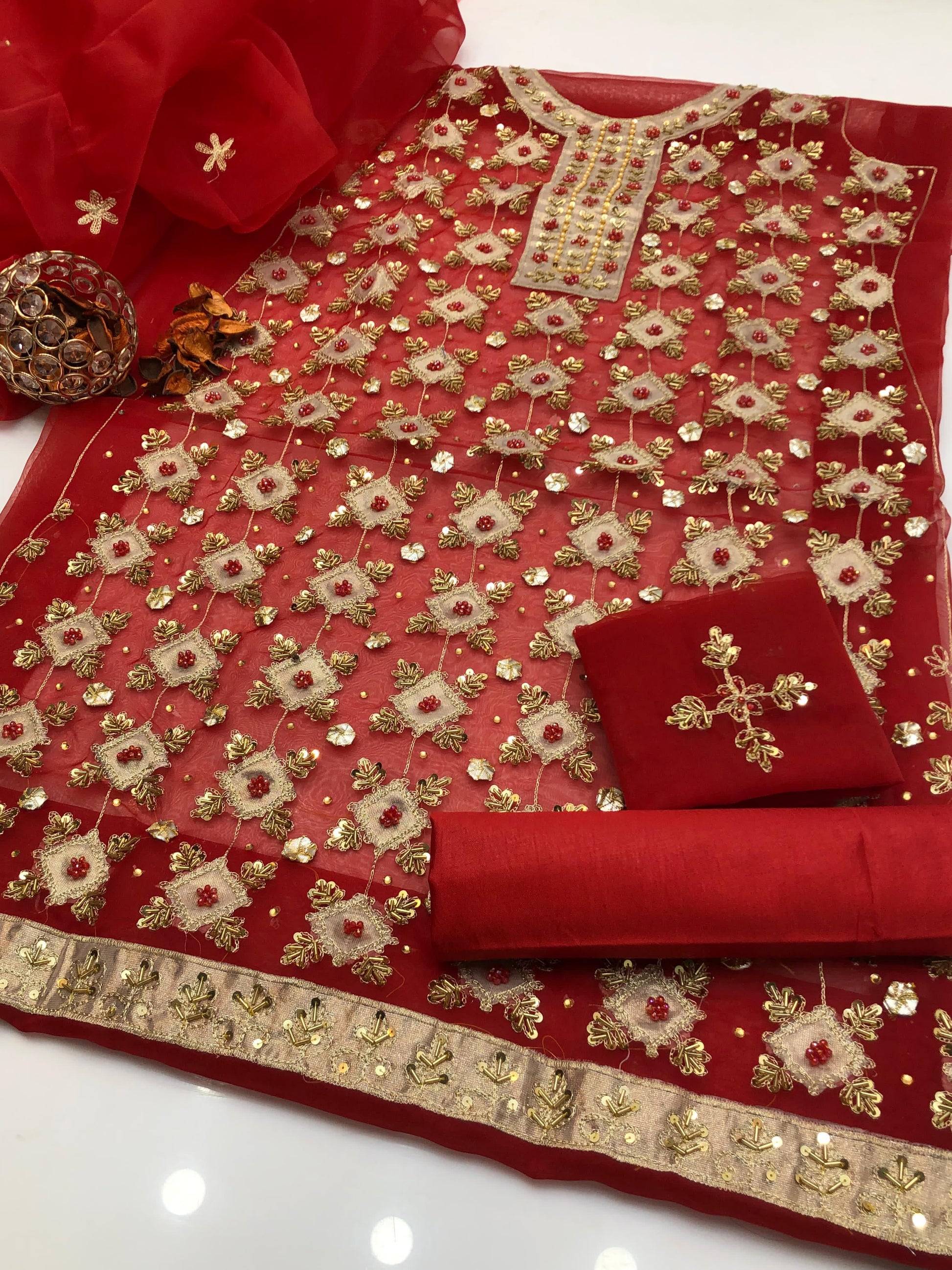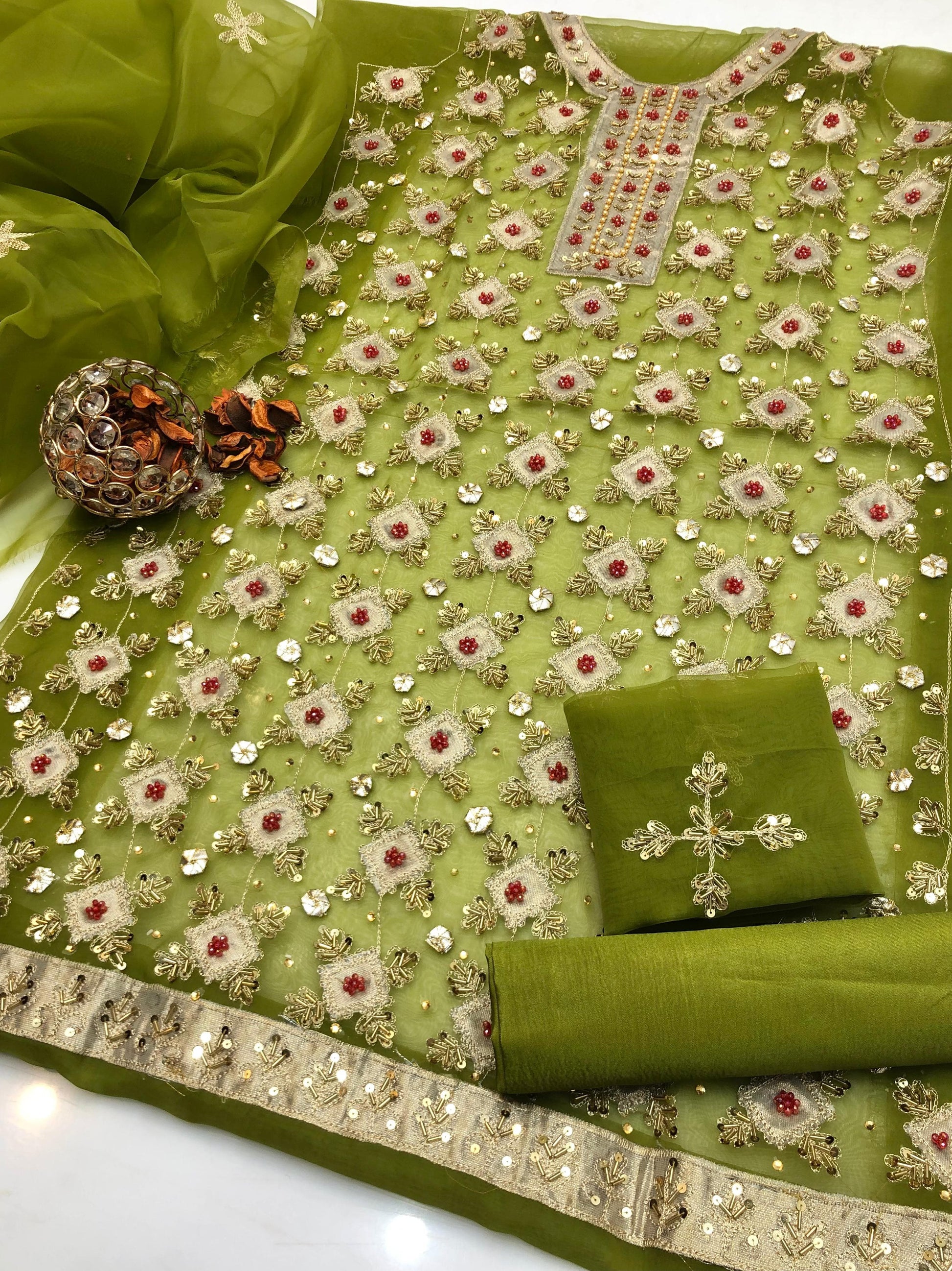 Fabric: Organza shirt & dupatta Kataan silk trouser