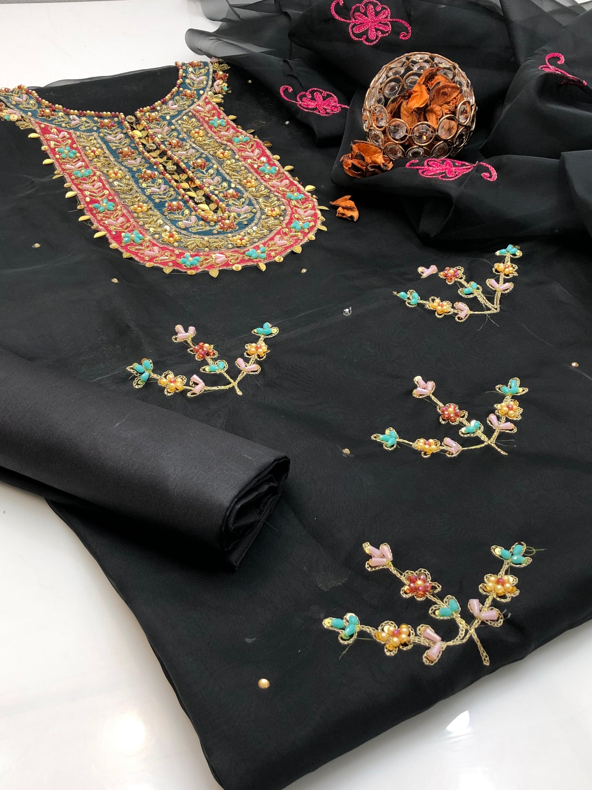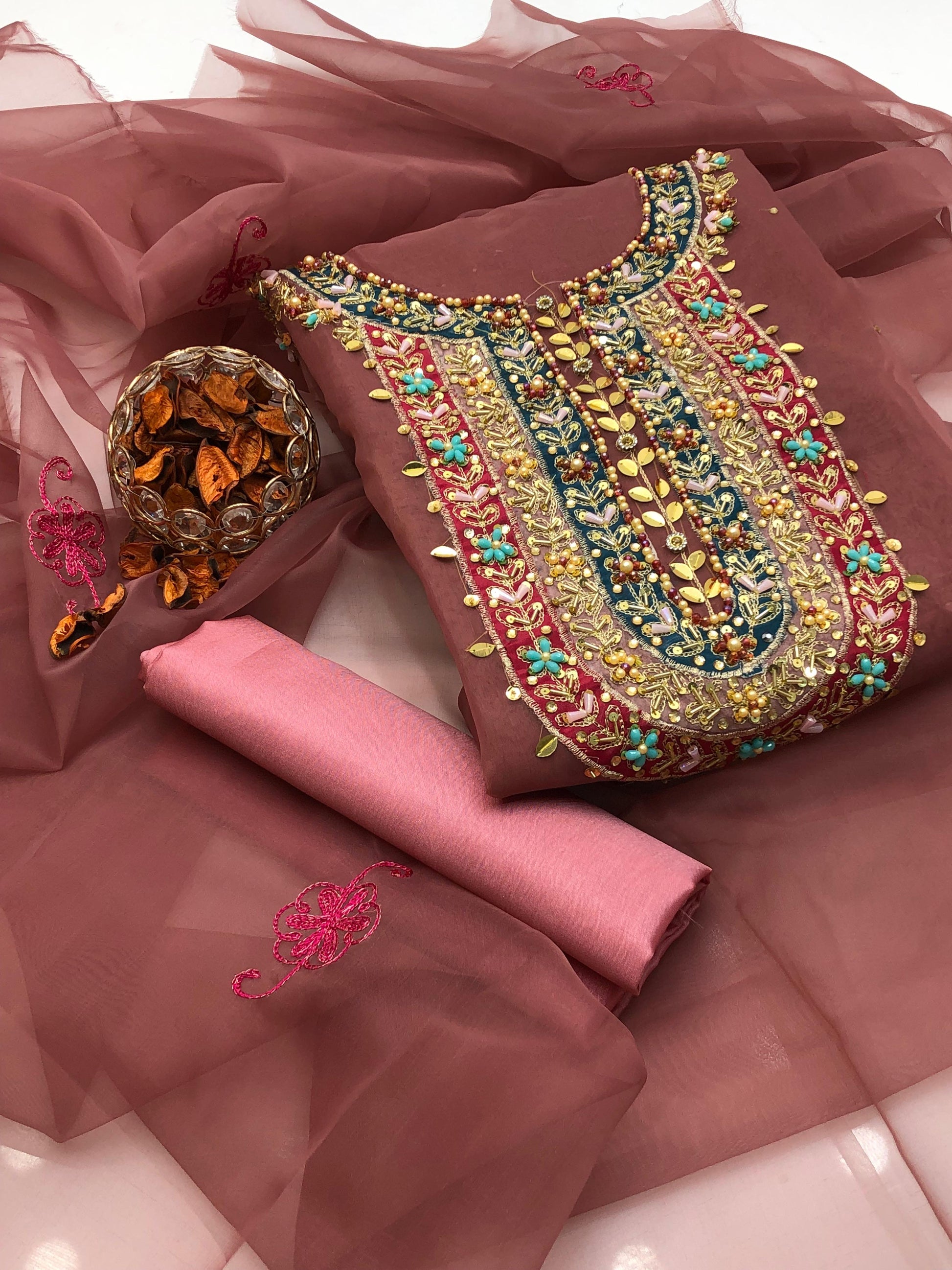 Fabric: Organza shirt & dupatta, kataan silk trouser