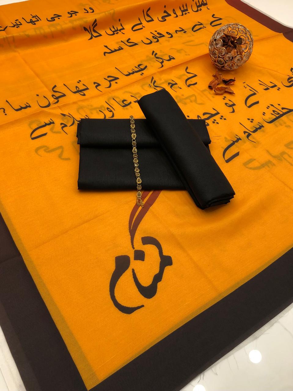 Timeless Kataan Silk & Lawn Calligraphy 3Pcs Dress