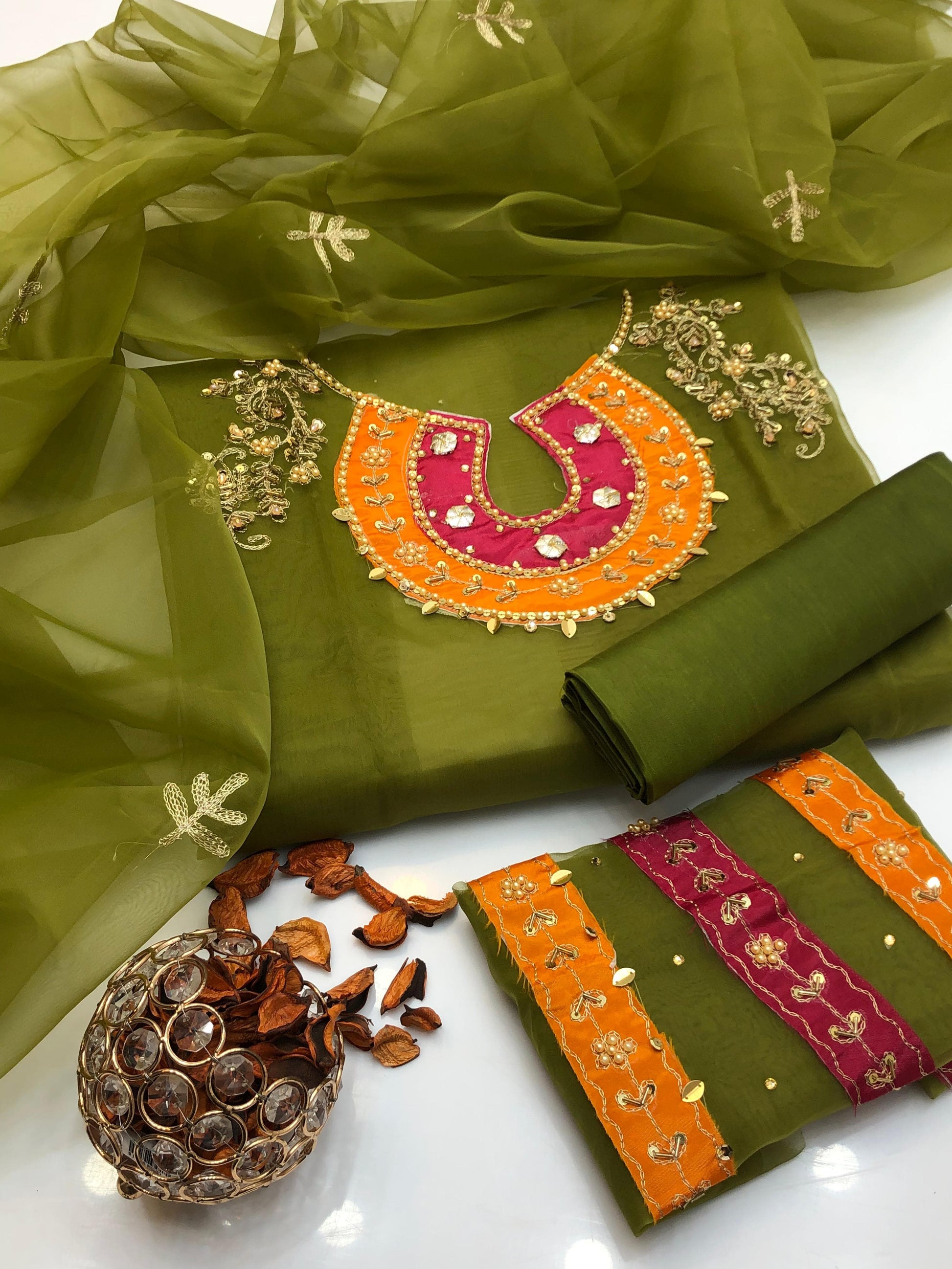 Fabric: Organza shirt & dupatta, kataan silk trouser