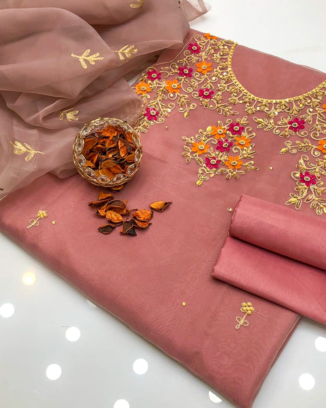 Fabric: Stuff Organza Shirt with Organza Dupatta and Plain Kataan Silk Trouser