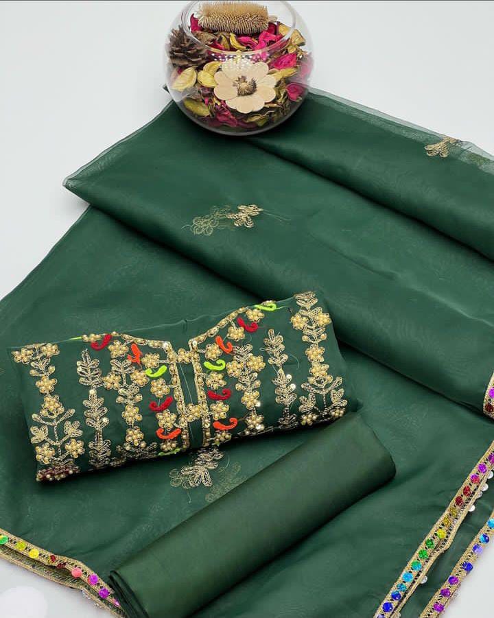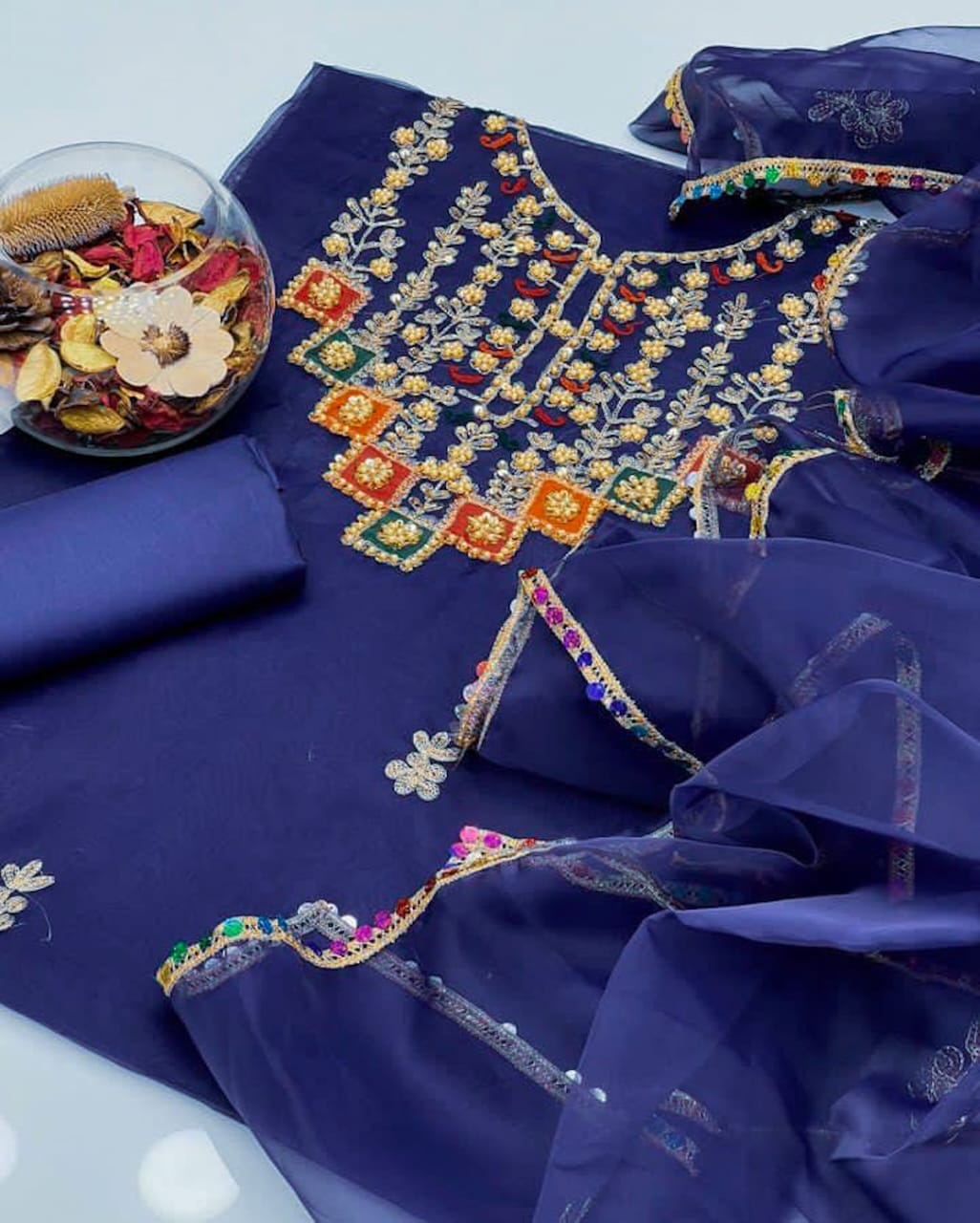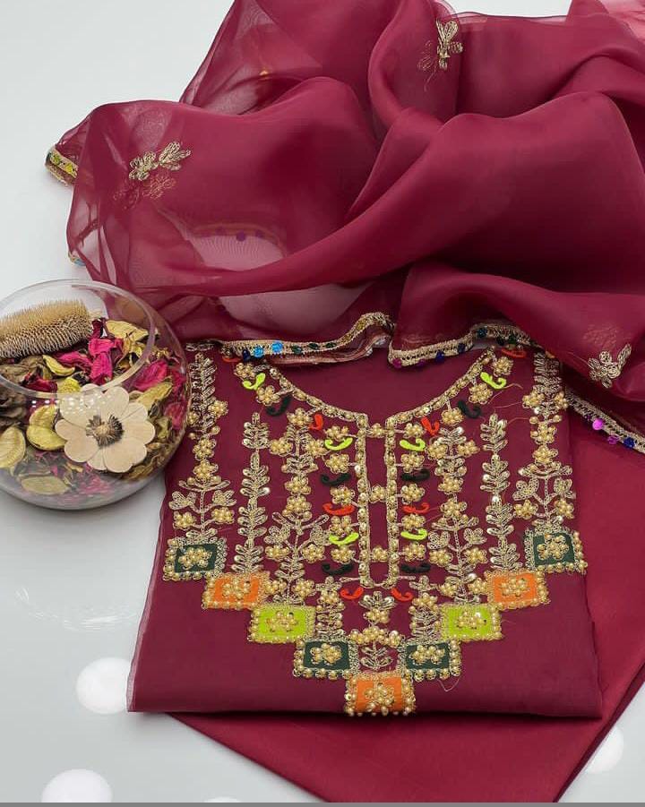 Fabric: Stuff Organza Shirt with Organza Dupatta and Plain Kataan Silk Trouser