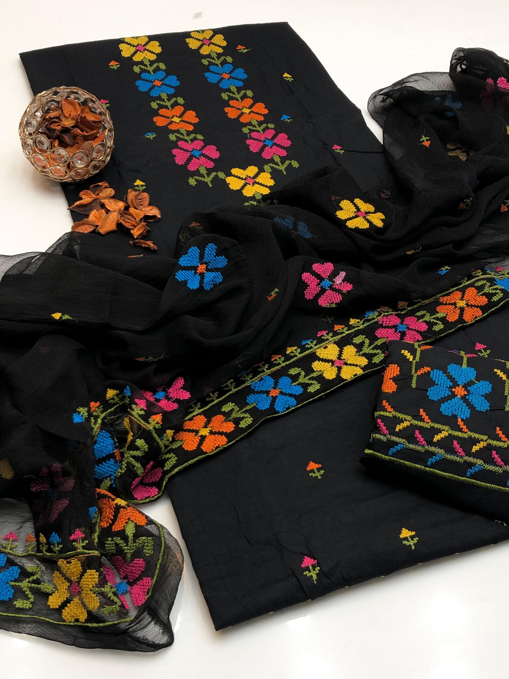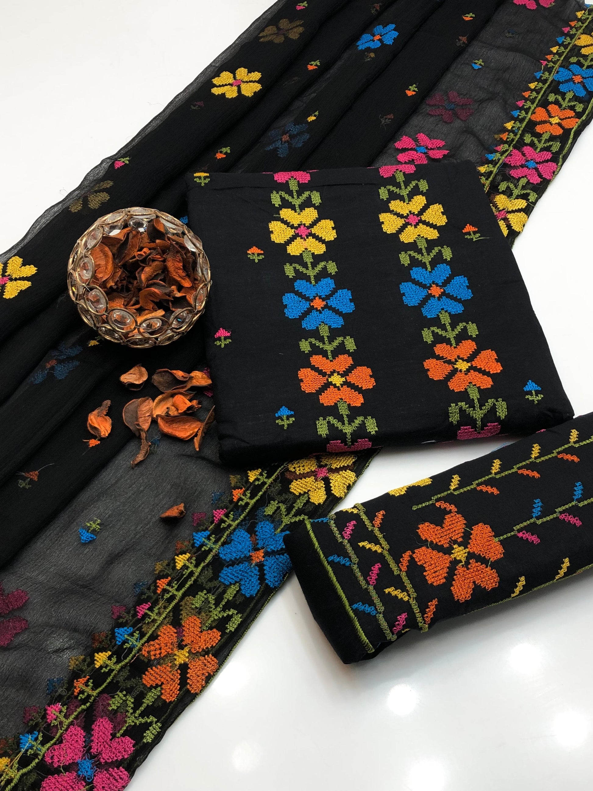 Work: Cross stitch embroidery on shirt dupatta and embroidered trouser