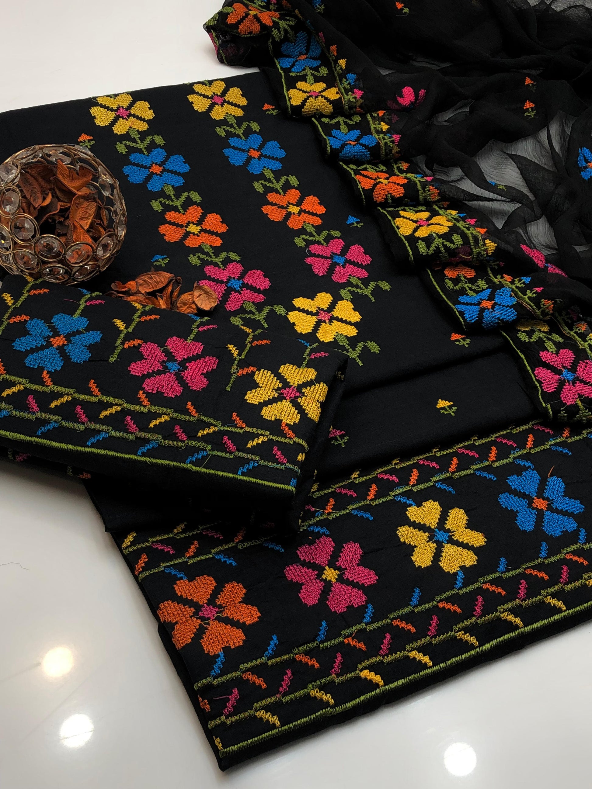 Captivating Lawn Cotton Cross Stitch Shirt and Dupatta 3Pcs Dress