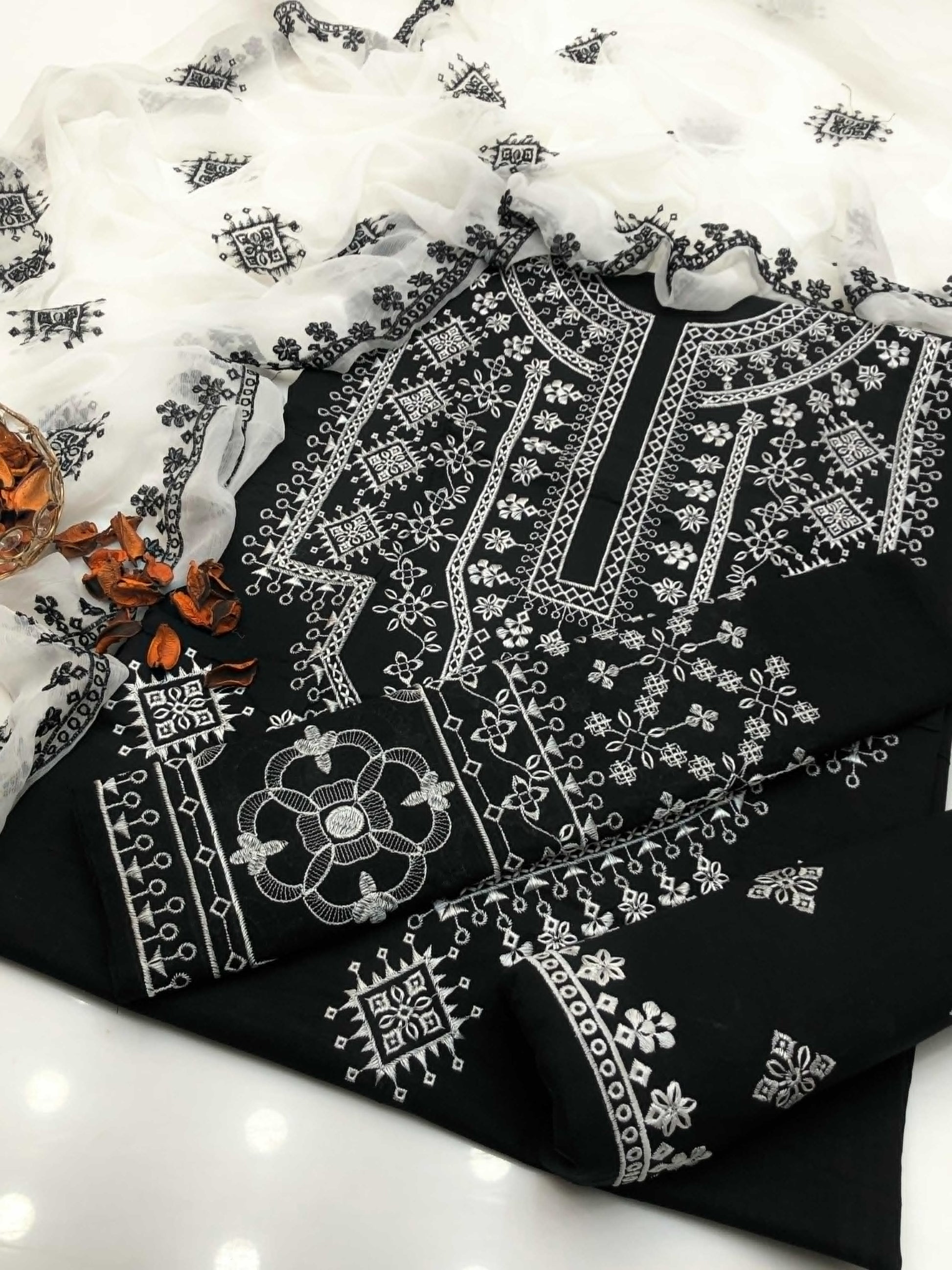 Details: Elegant embroidered chiffon dupatta with matching trouser