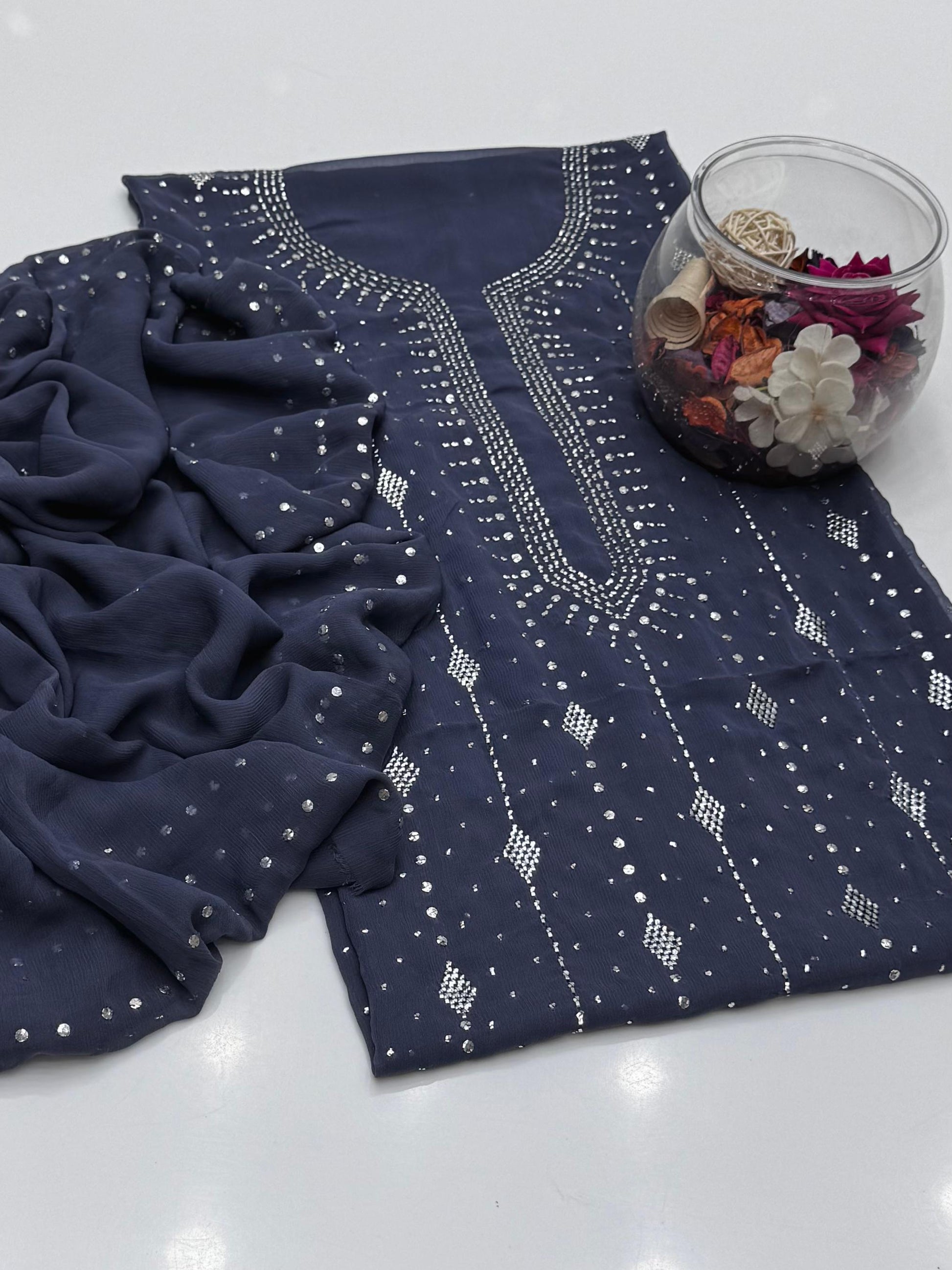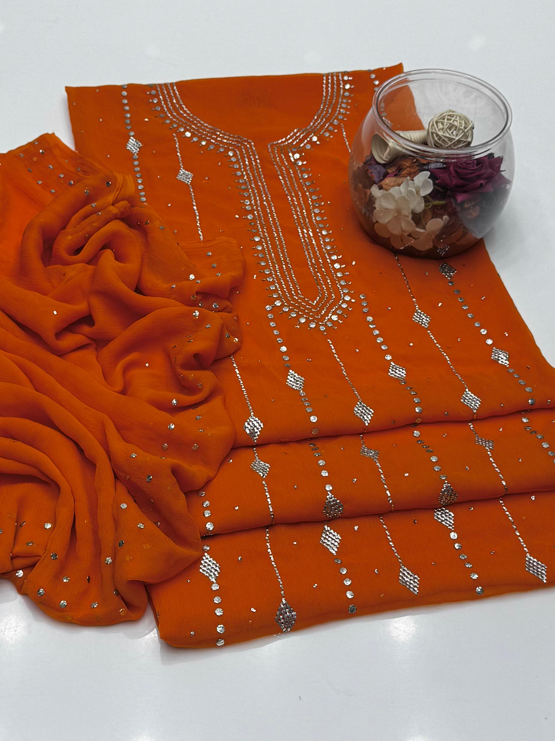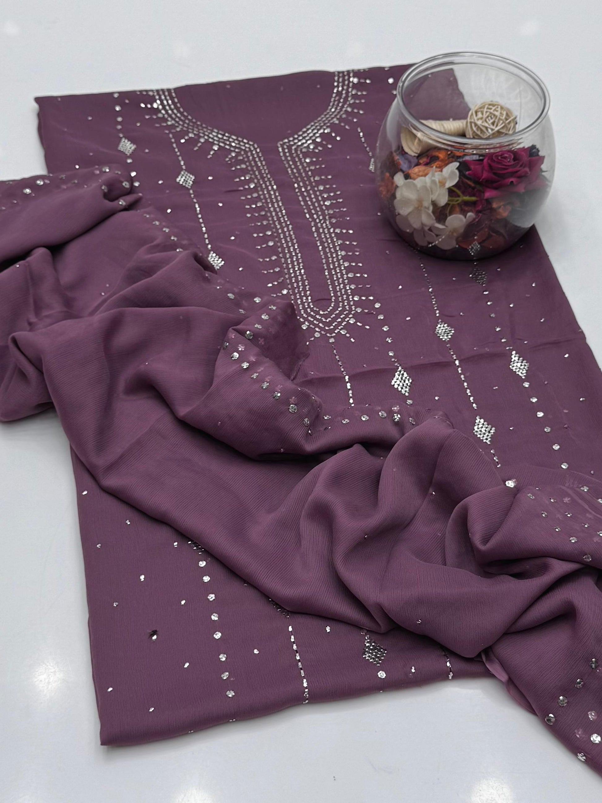 Bamber Chiffon Mukesh Work Shirt & Dupatta 2Pcs Dress