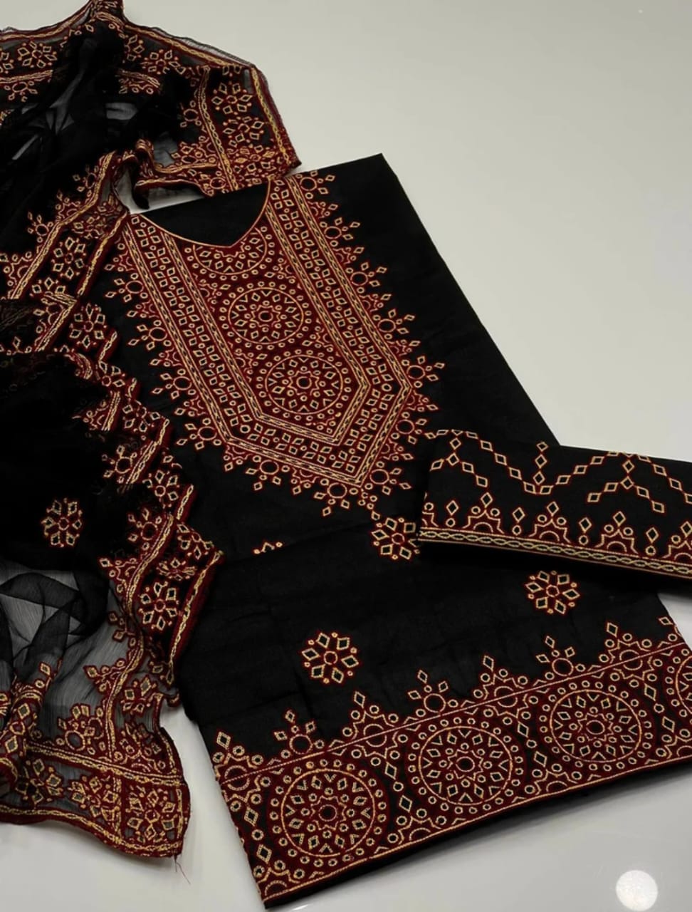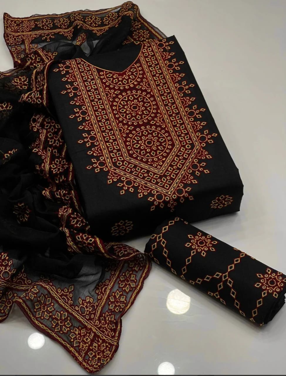 Charming Lawn Cotton Embroidered Suit with Chiffon Dupatta 3Pcs Dress
