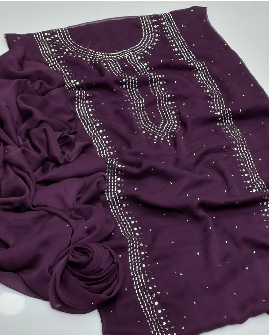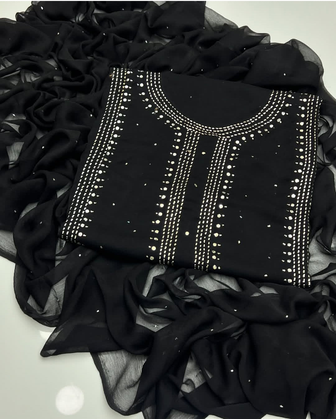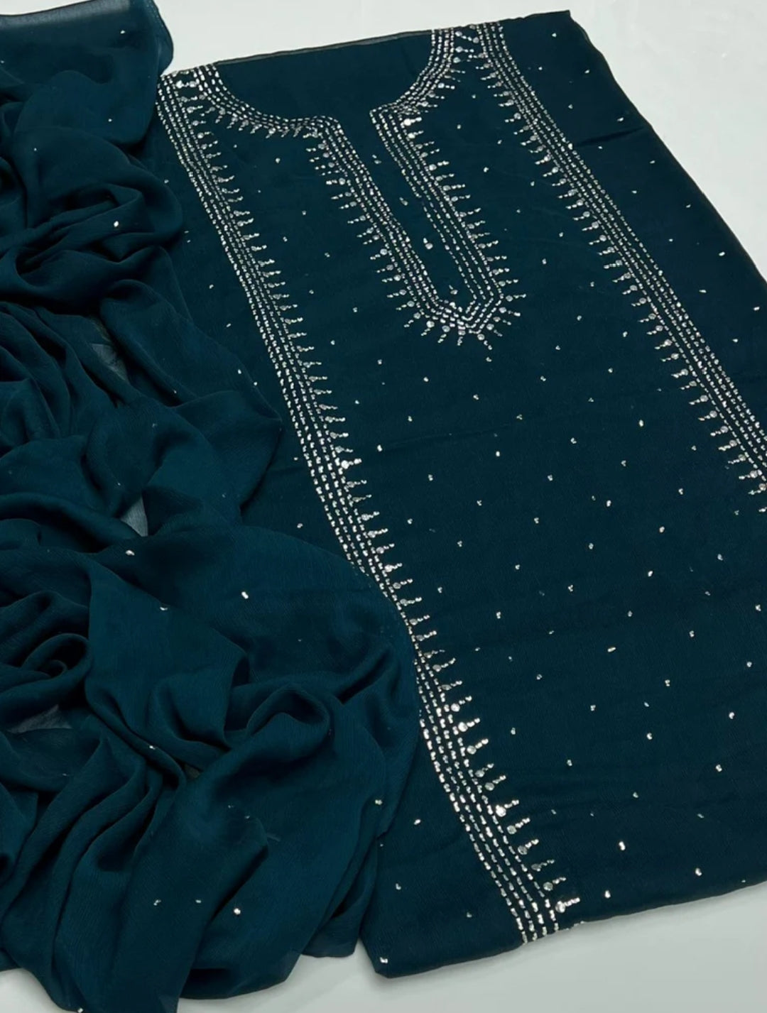 Fabric: Premium chiffon shirt with matching chiffon dupatta