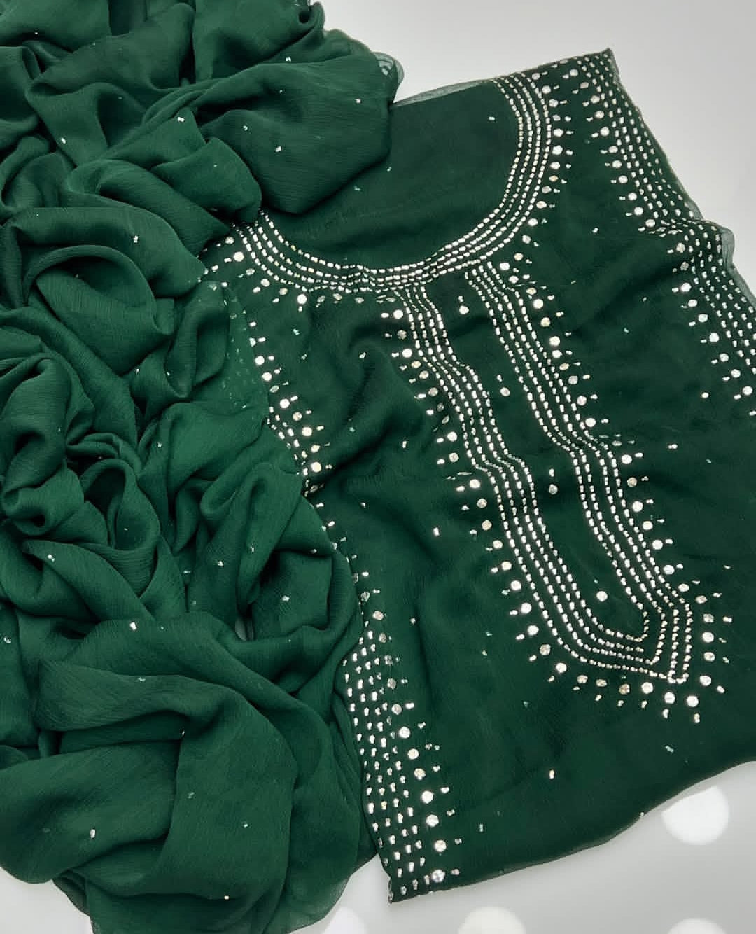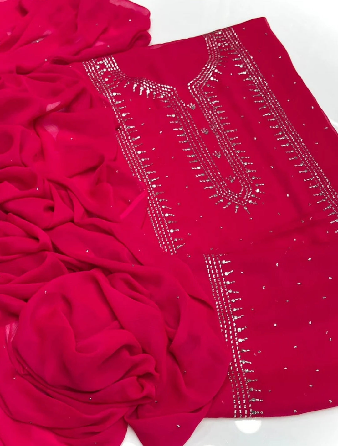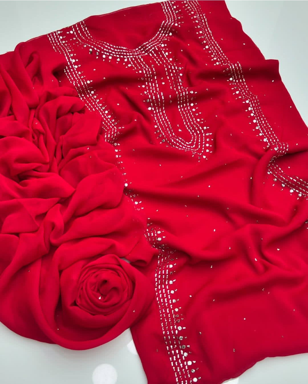 Fabric: Premium chiffon shirt with matching chiffon dupatta