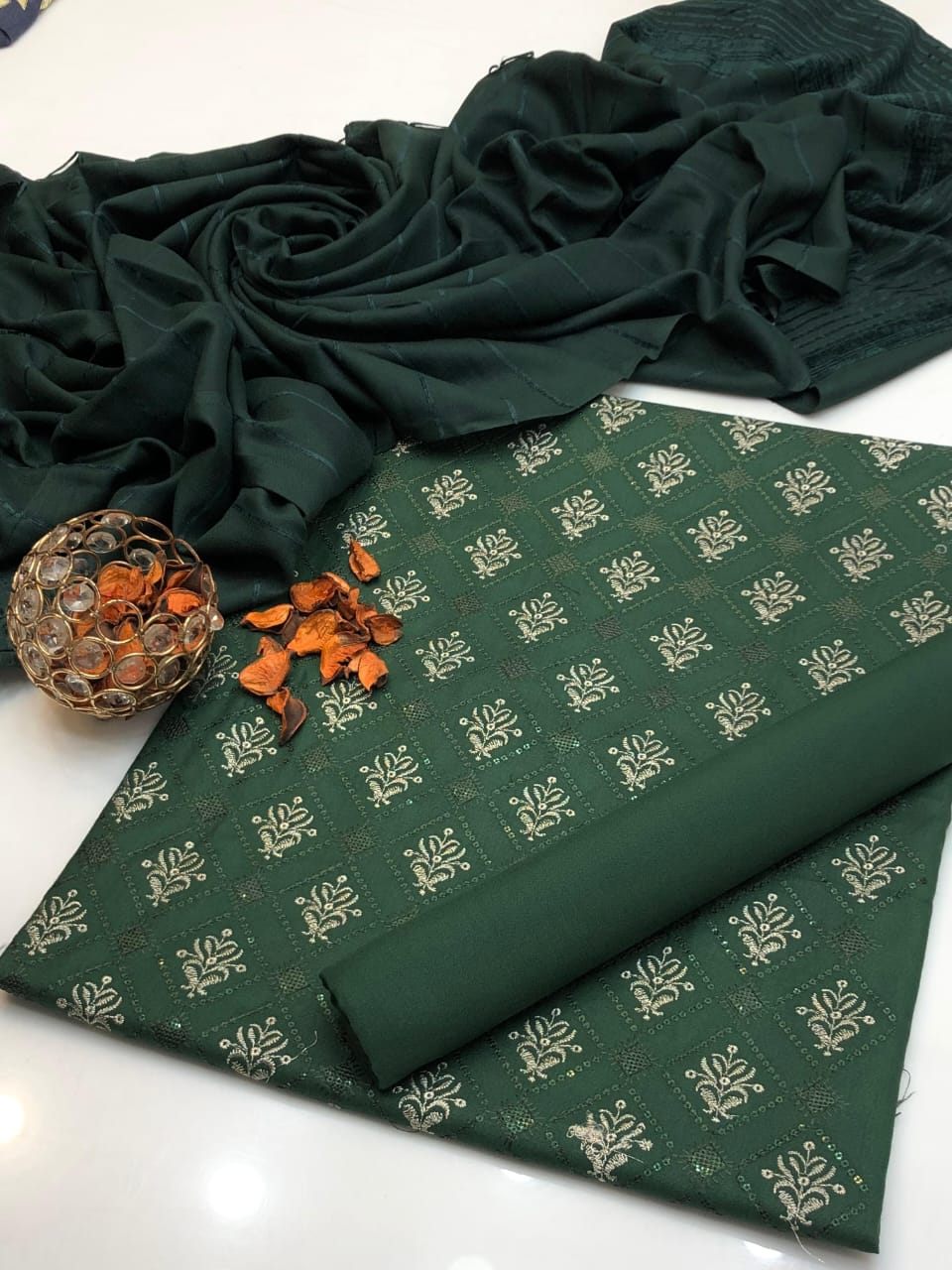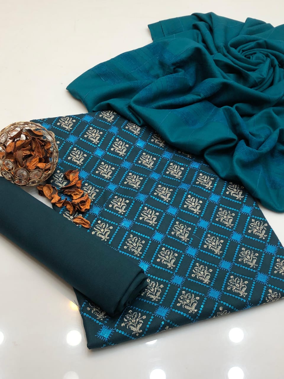 Details: Paired with plain trouser and Dhanak Marina velvet border shawl – soft, warm & elegant for winter ❄️