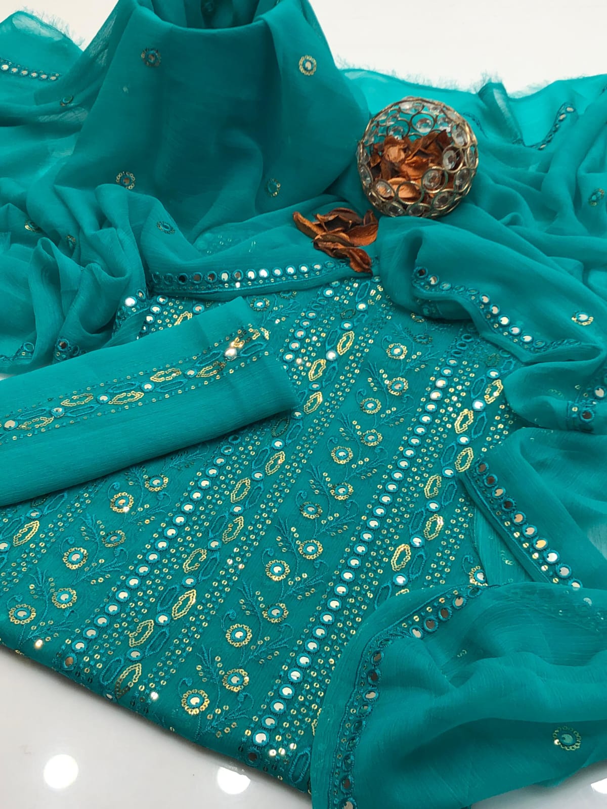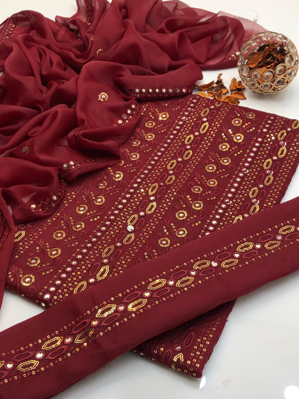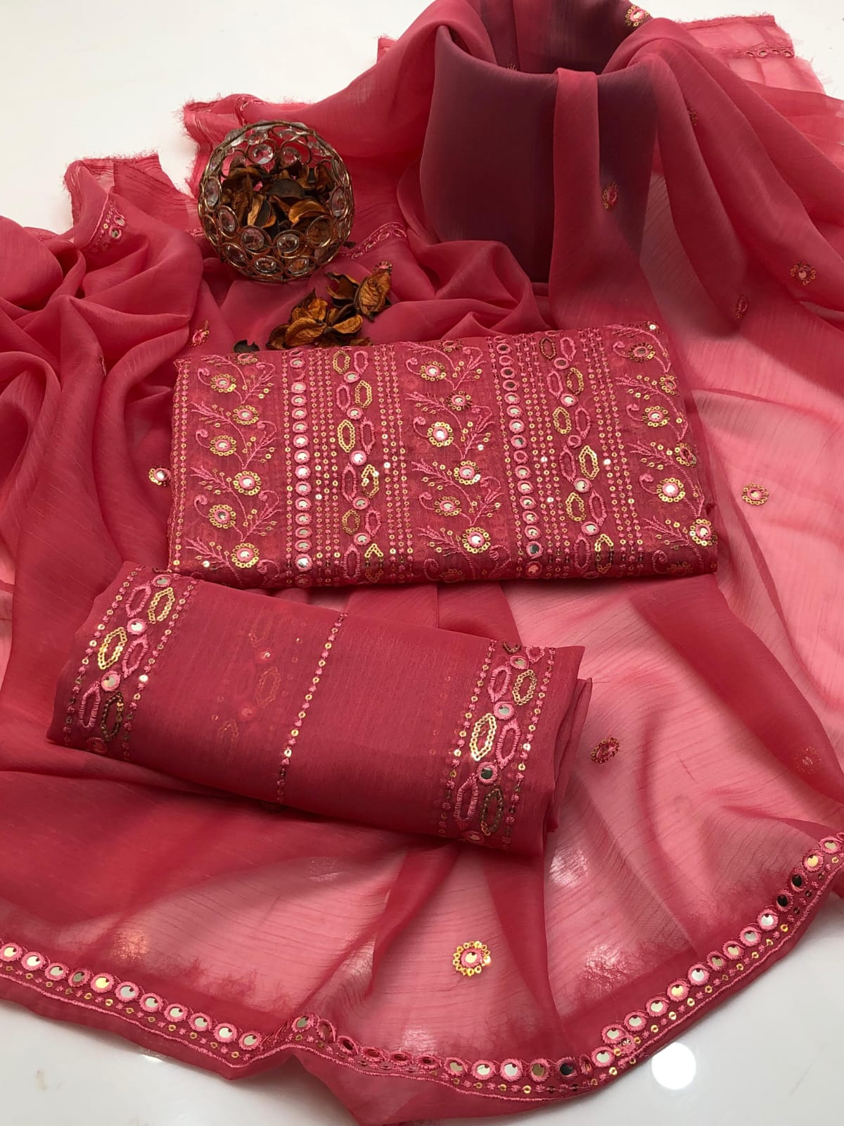 Details: Heavy chiffon dupatta enhanced with 2 side borders