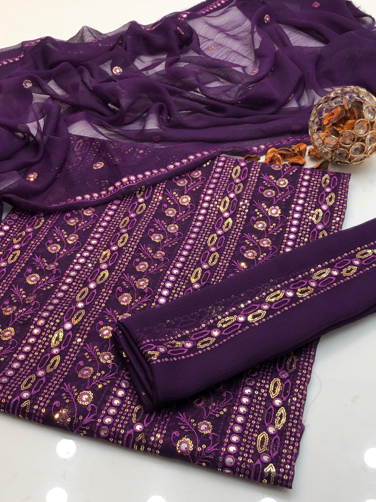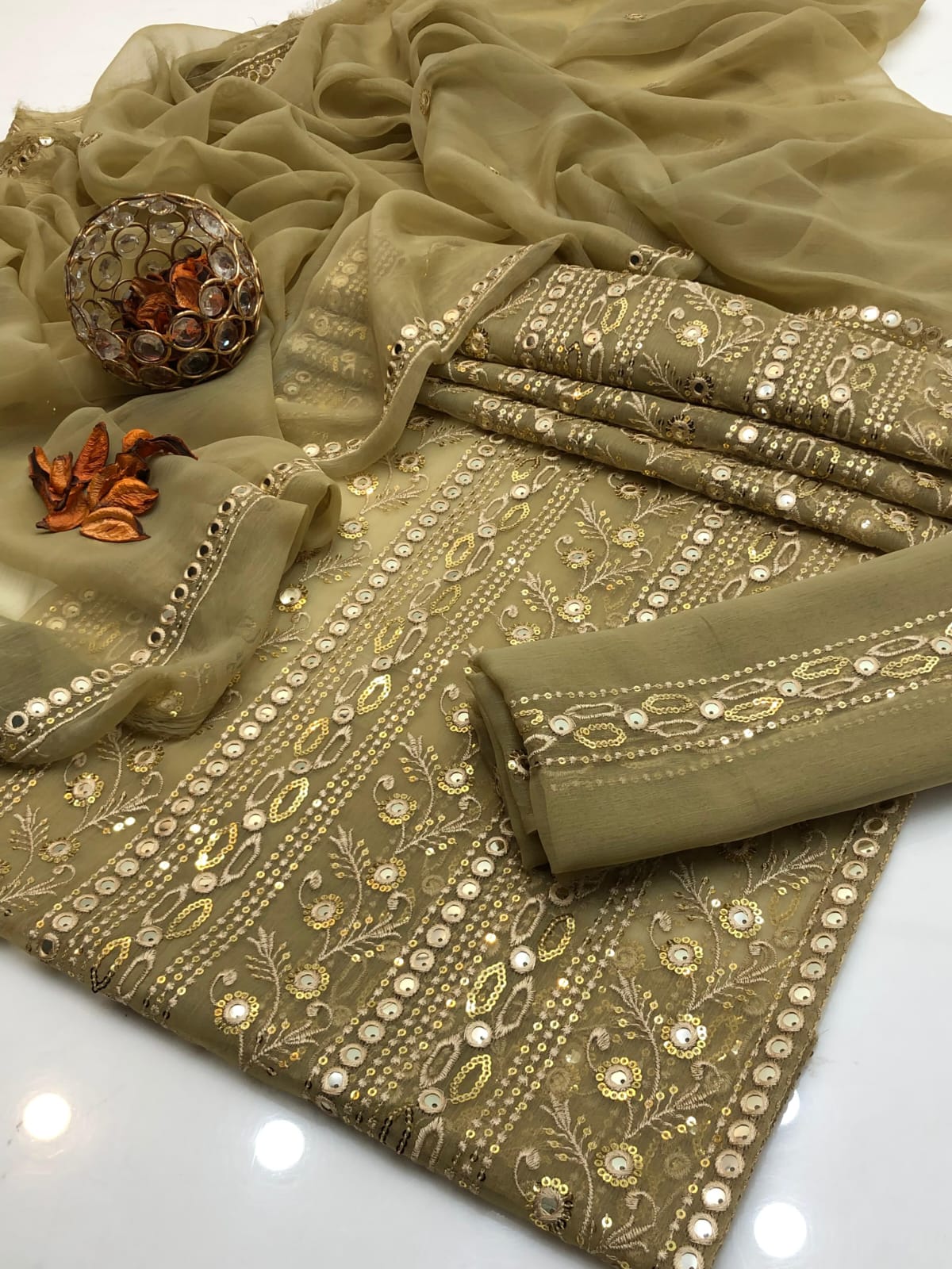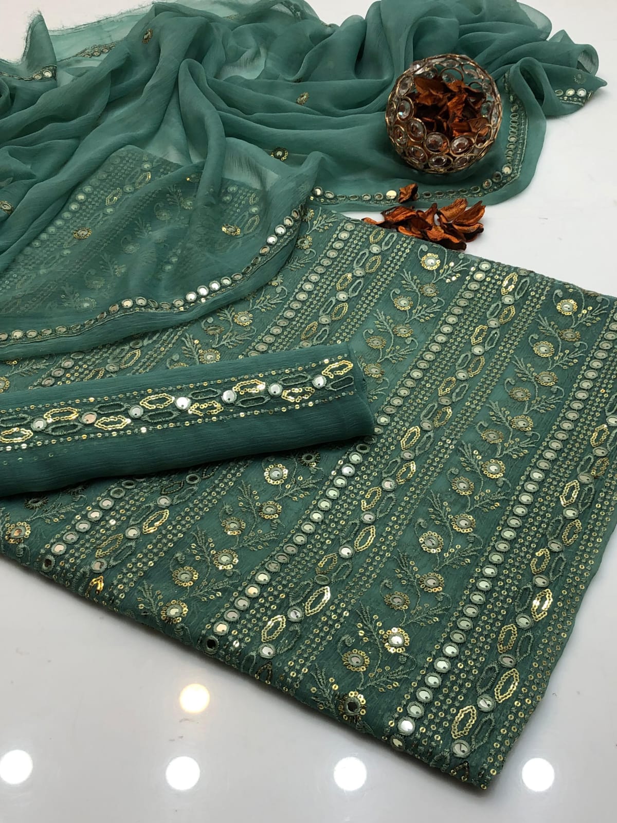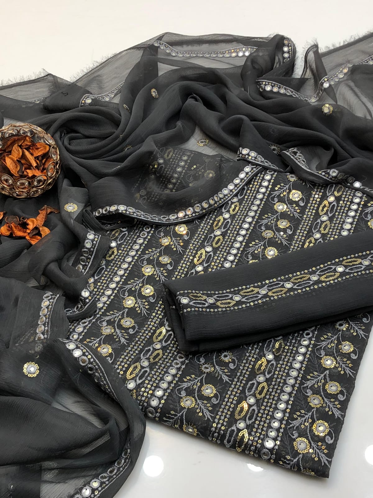 Details: Heavy chiffon dupatta enhanced with 2 side borders