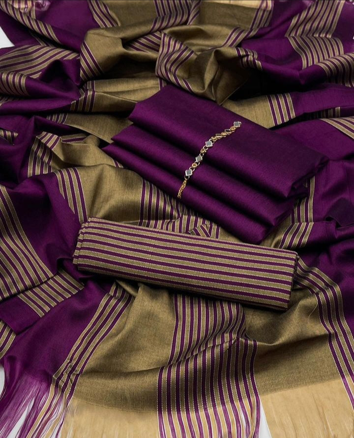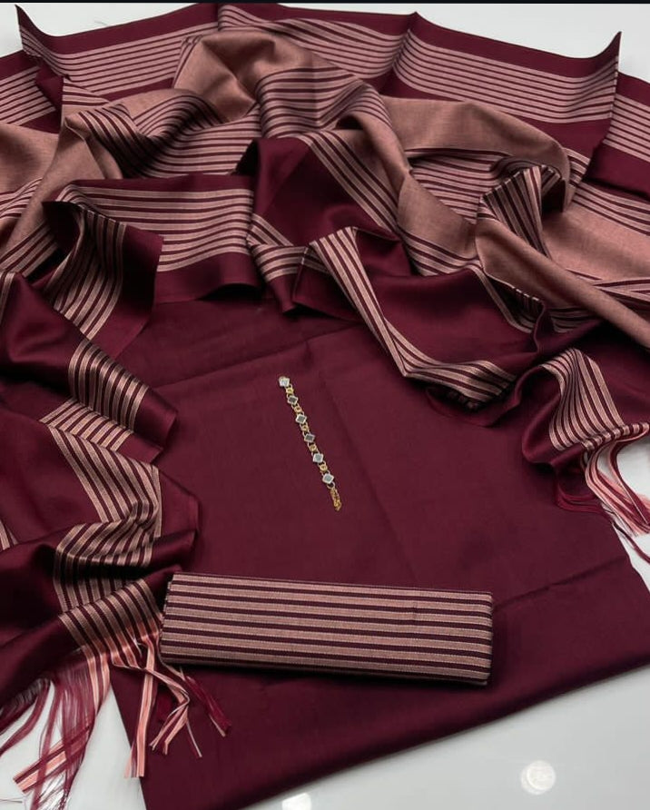Elite Winter Sussi Shirt with Jacquard Zari Shawl 3Pcs Dress