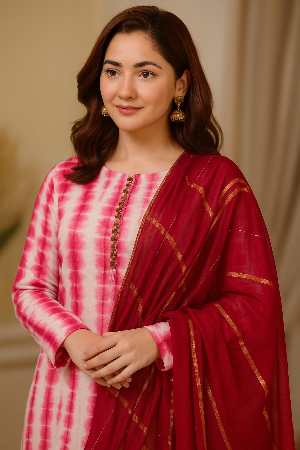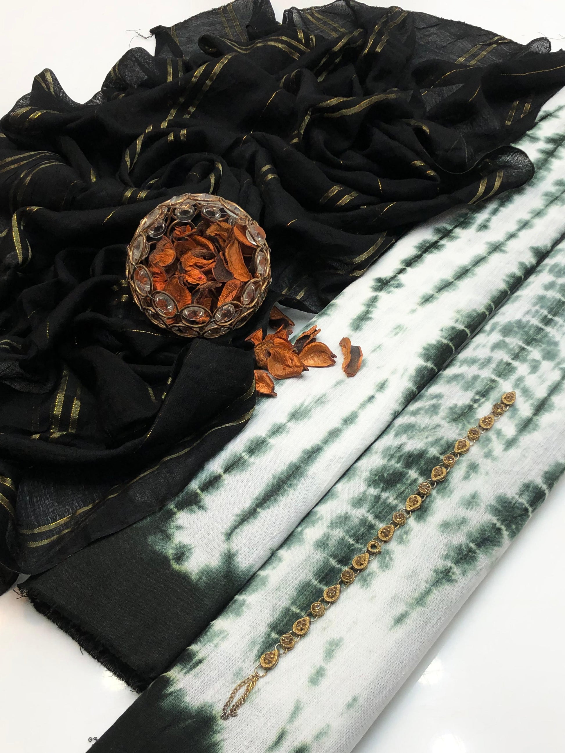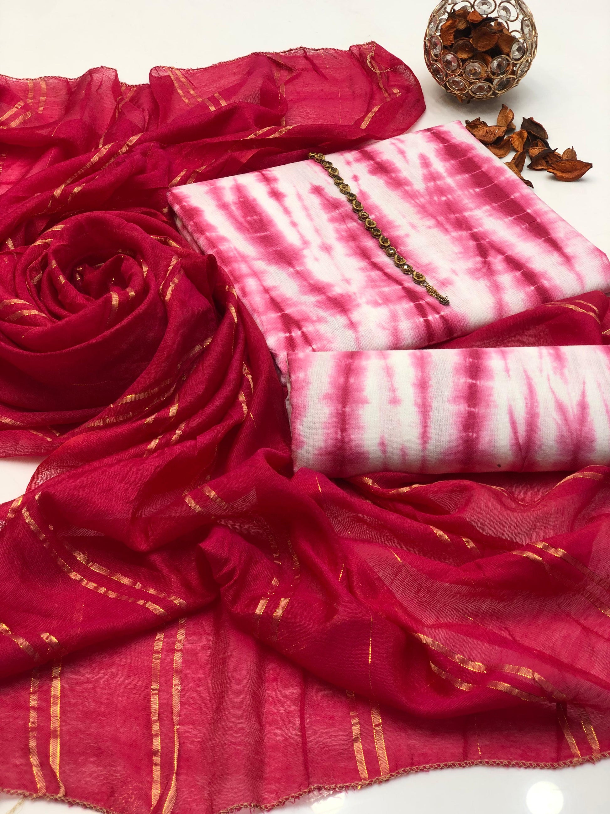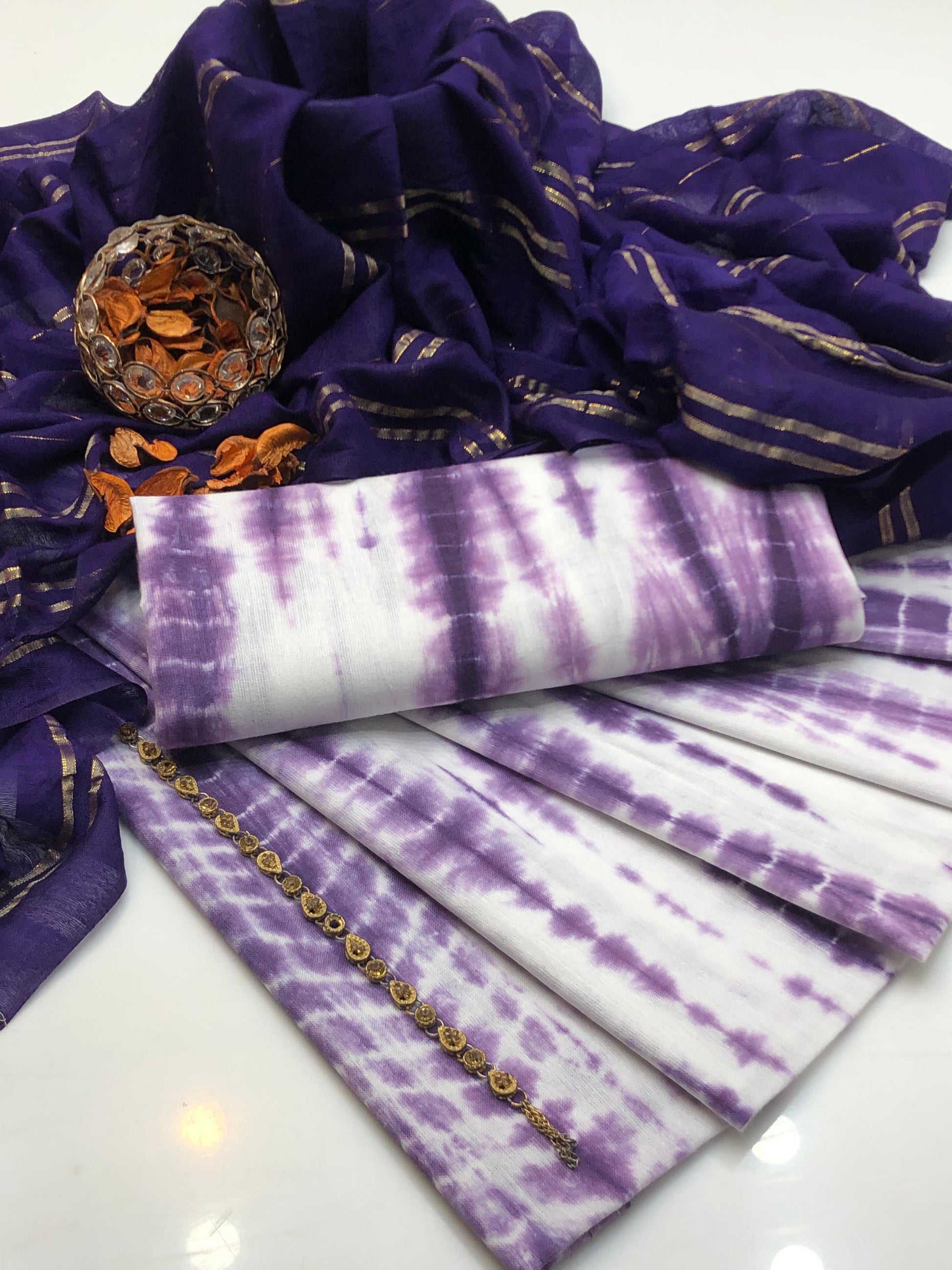Eminent Pure Cotton Tie N Dye with Zari Dupatta 3Pcs Dress