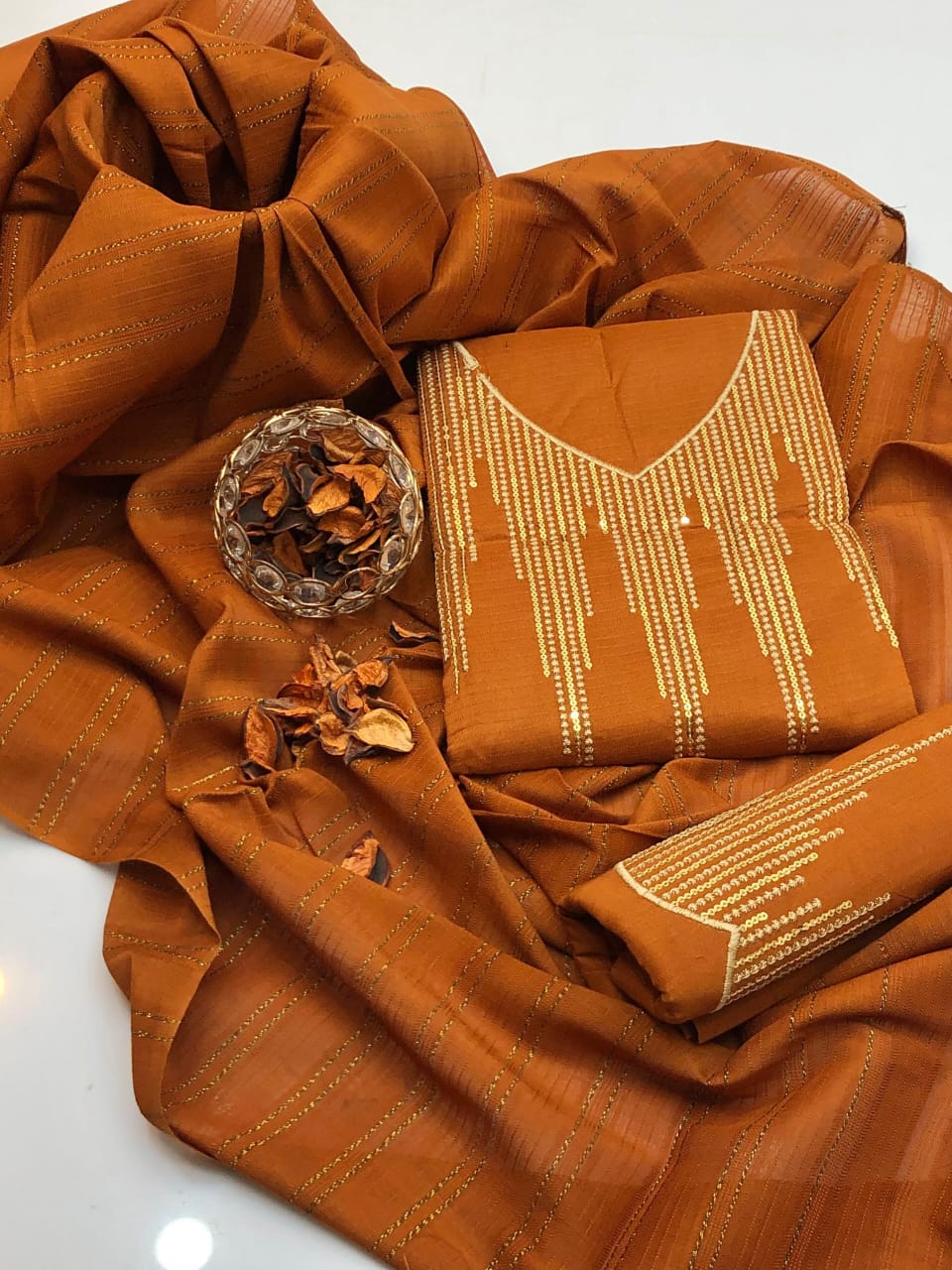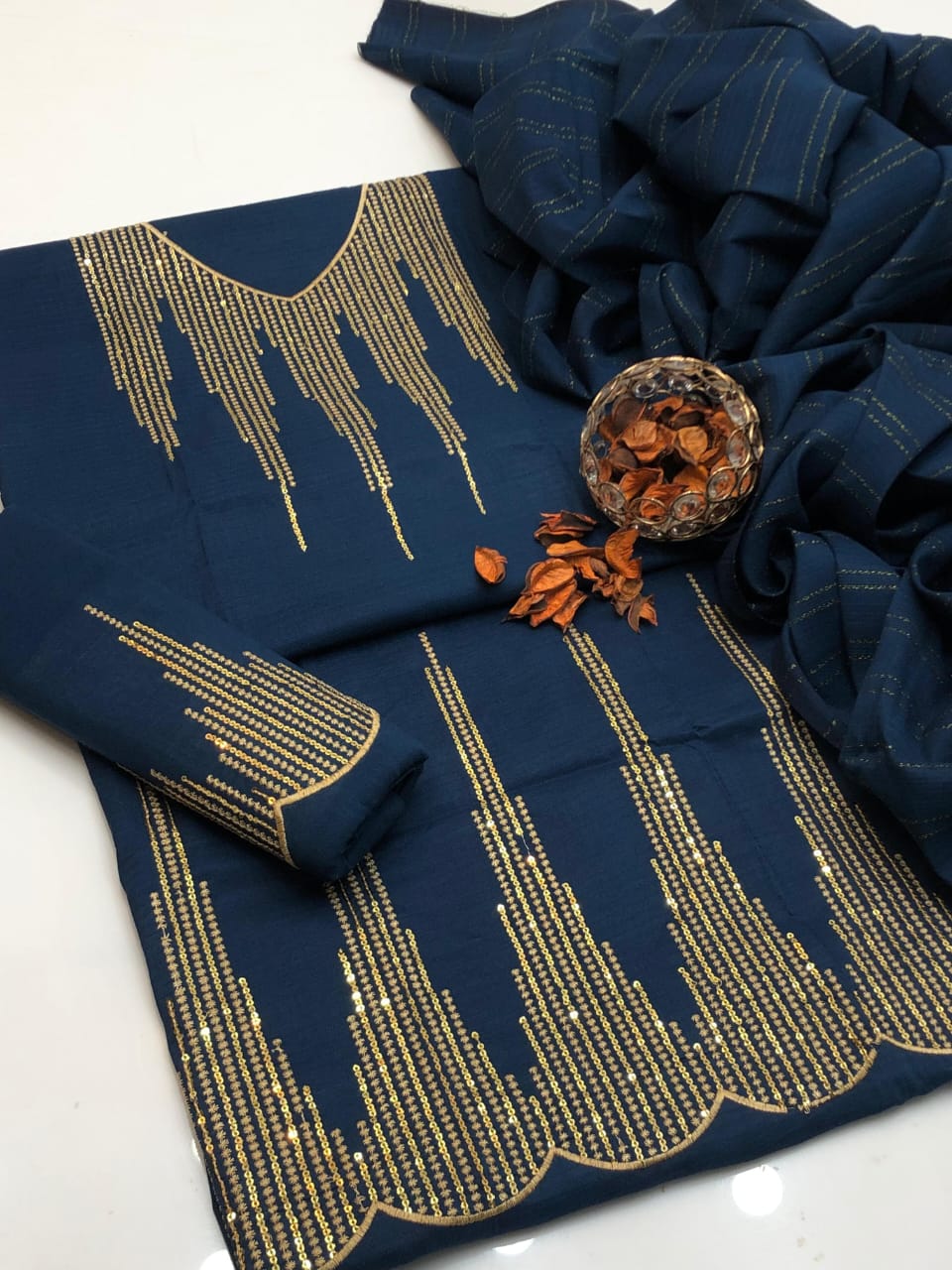Details: Zari Jacquard Shawl Dupatta with matching sequence trouser – elegant & warm choice for winter wear