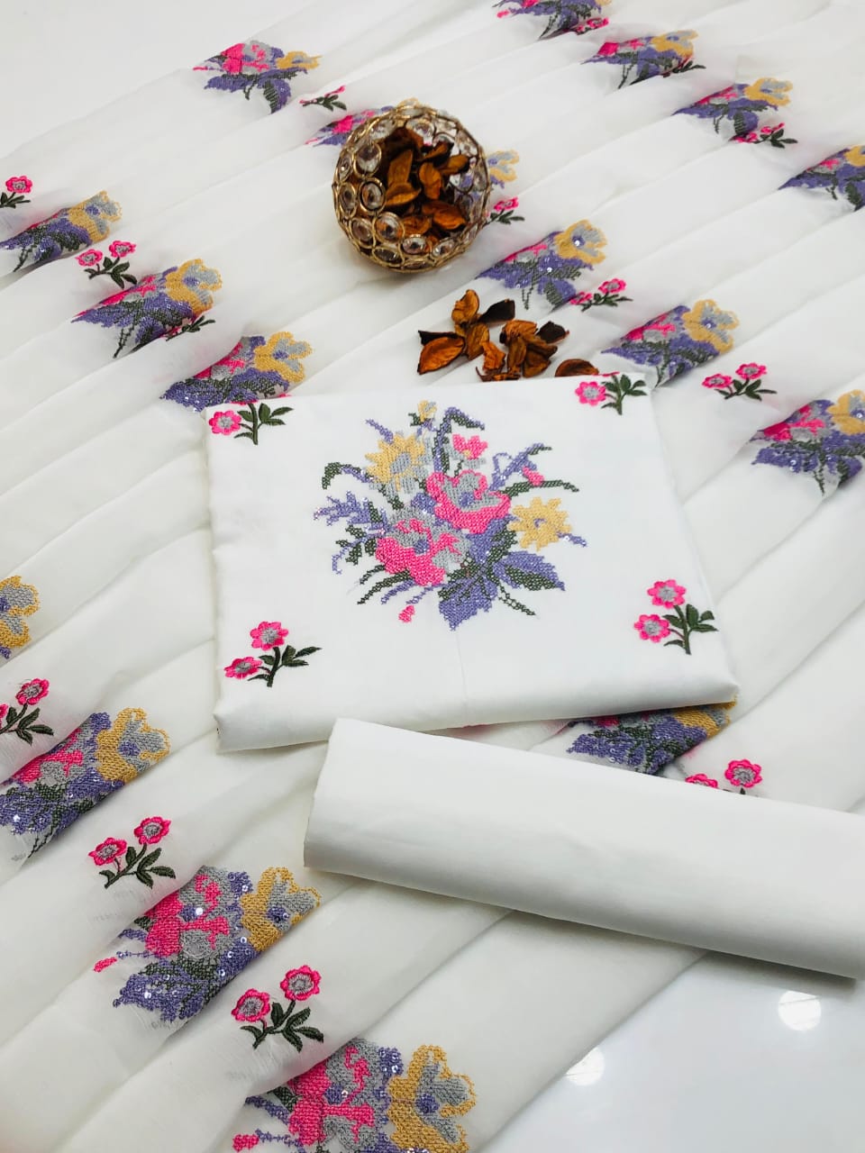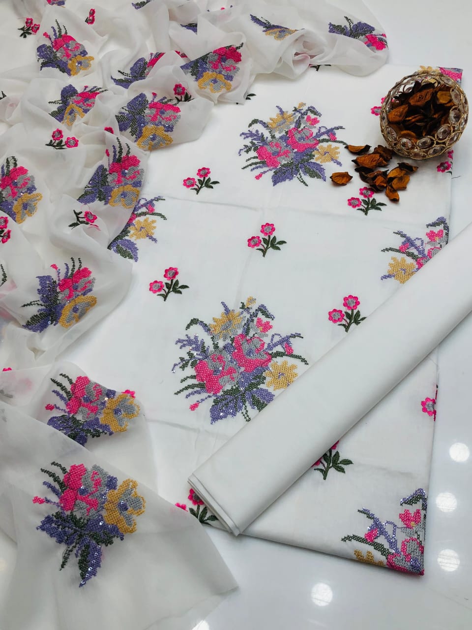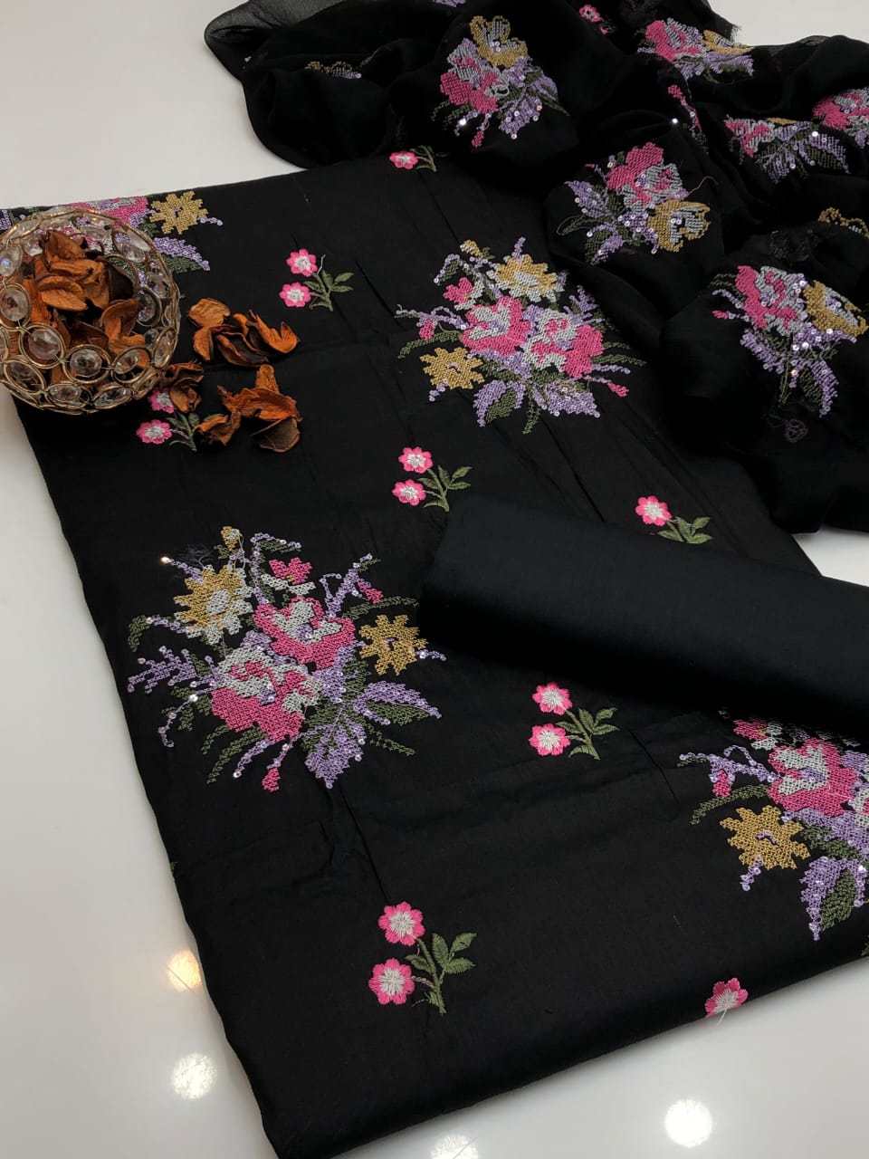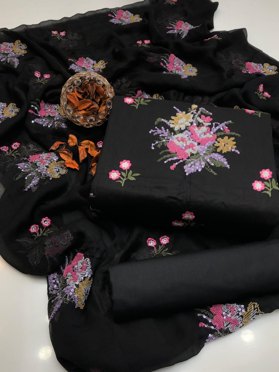 Fabric: GTM Lawn with detailed computer cross-stitch jaal embroidery and sequin touch