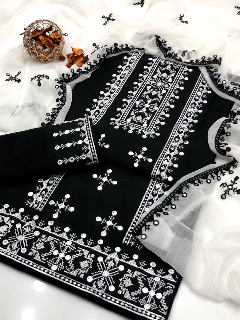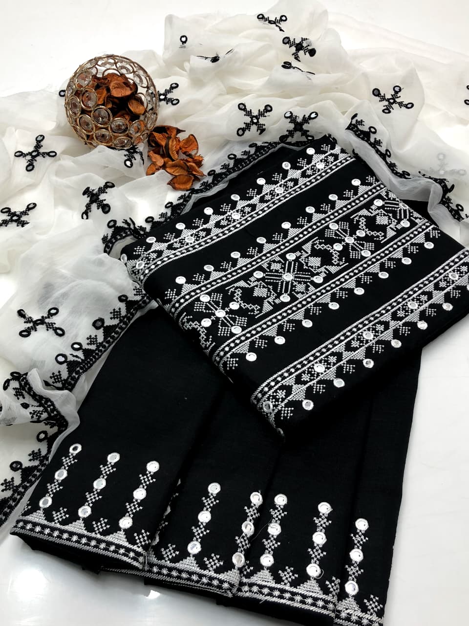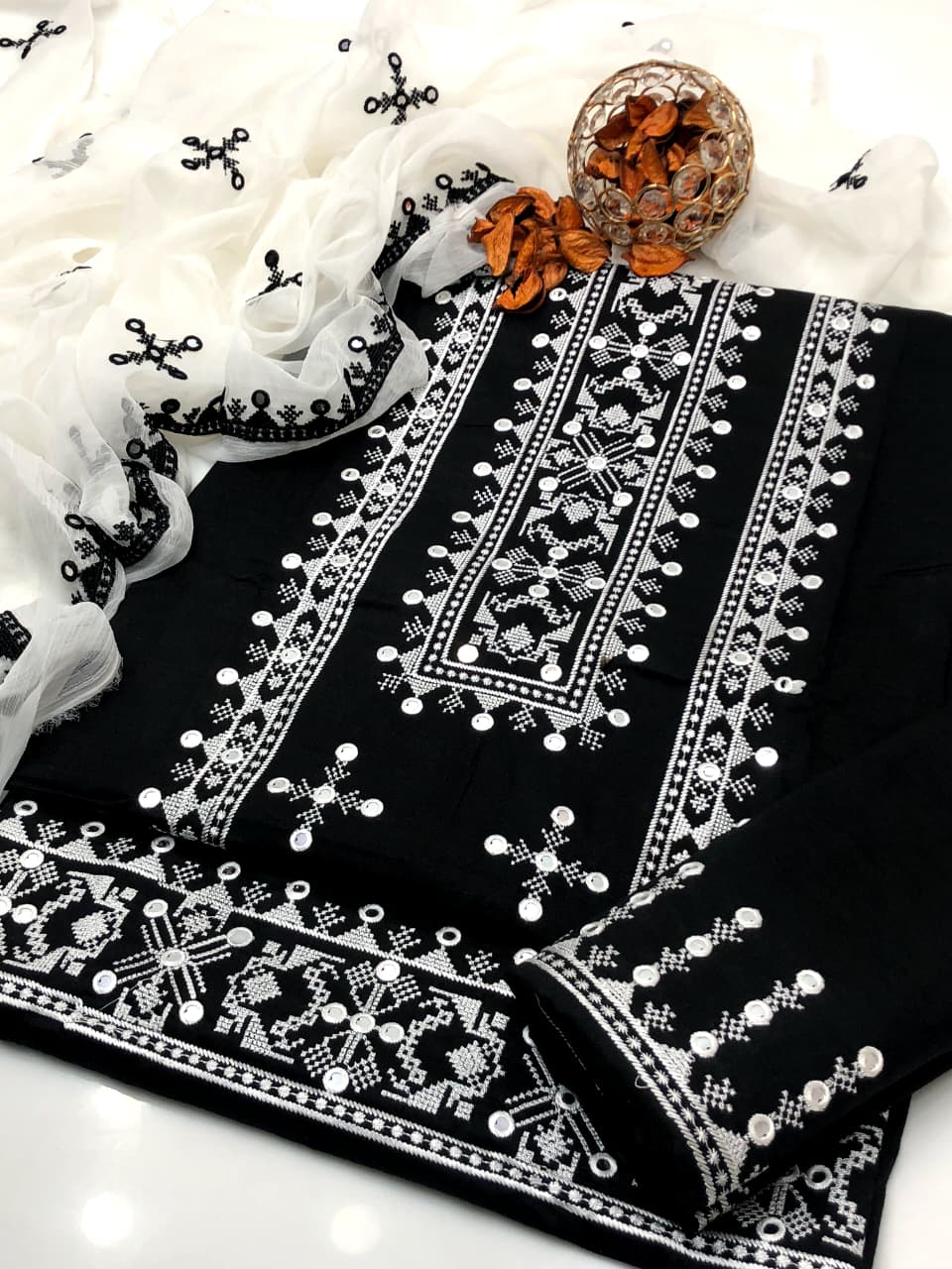 Work: 9mm Cross Stitch Embroidery on Shirt, Dupatta & Trouser