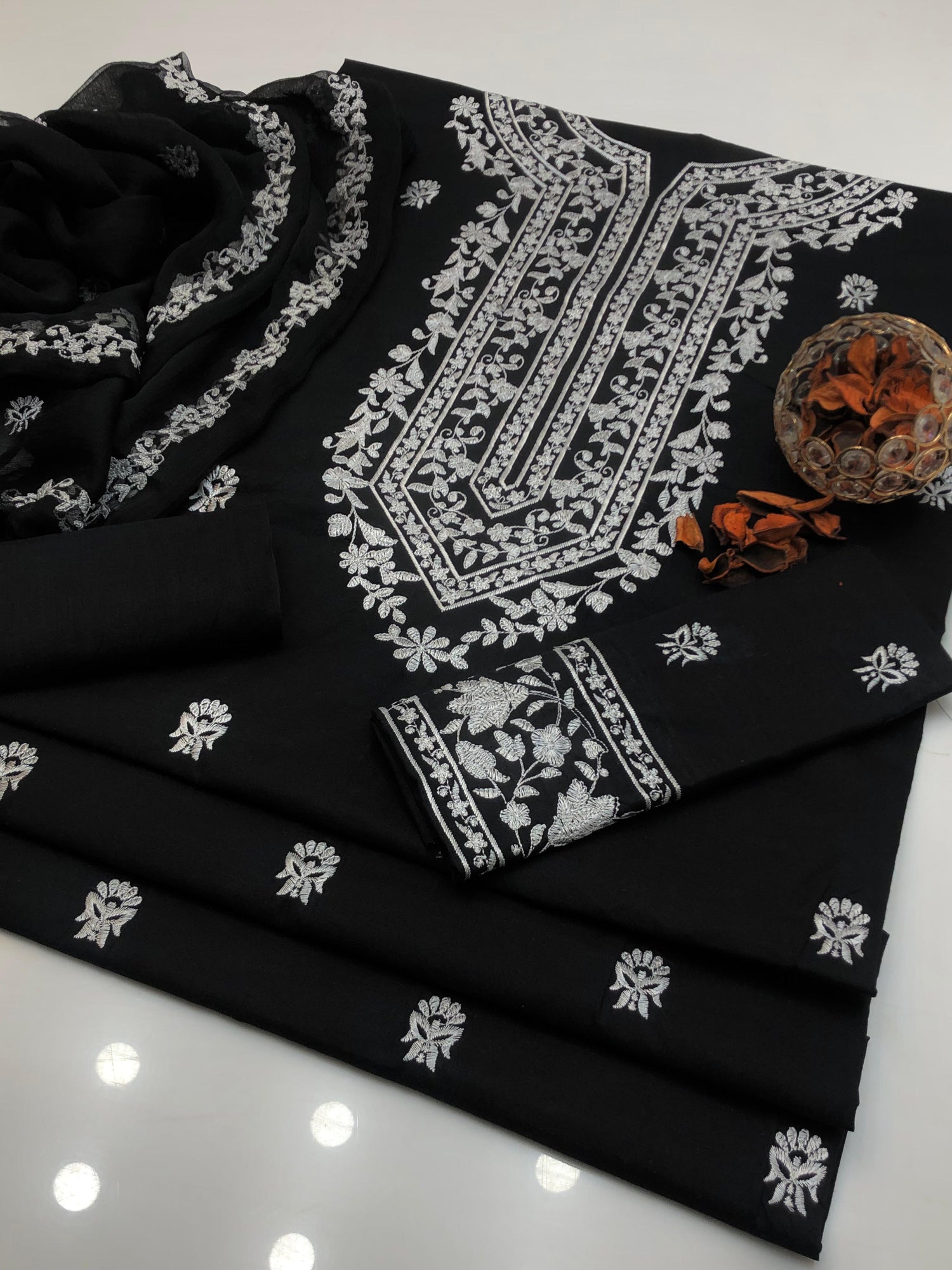 Unique Lawn Cotton Embroidered Shirt and Dupatta 3Pcs Dress